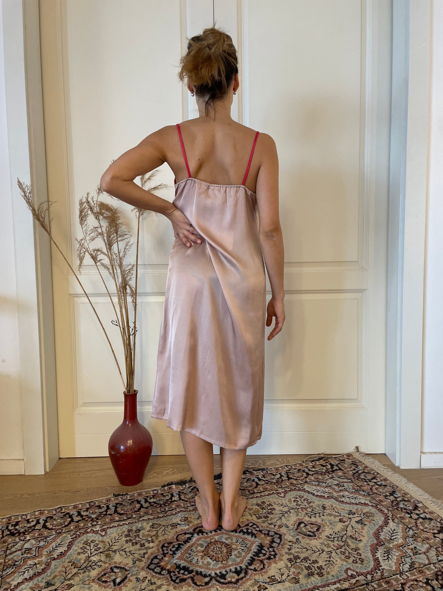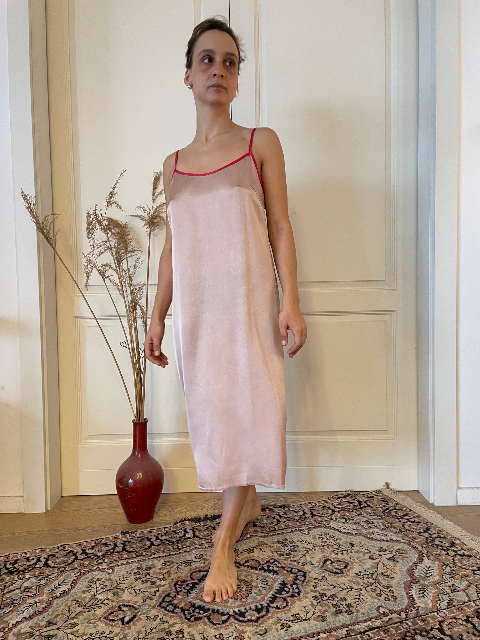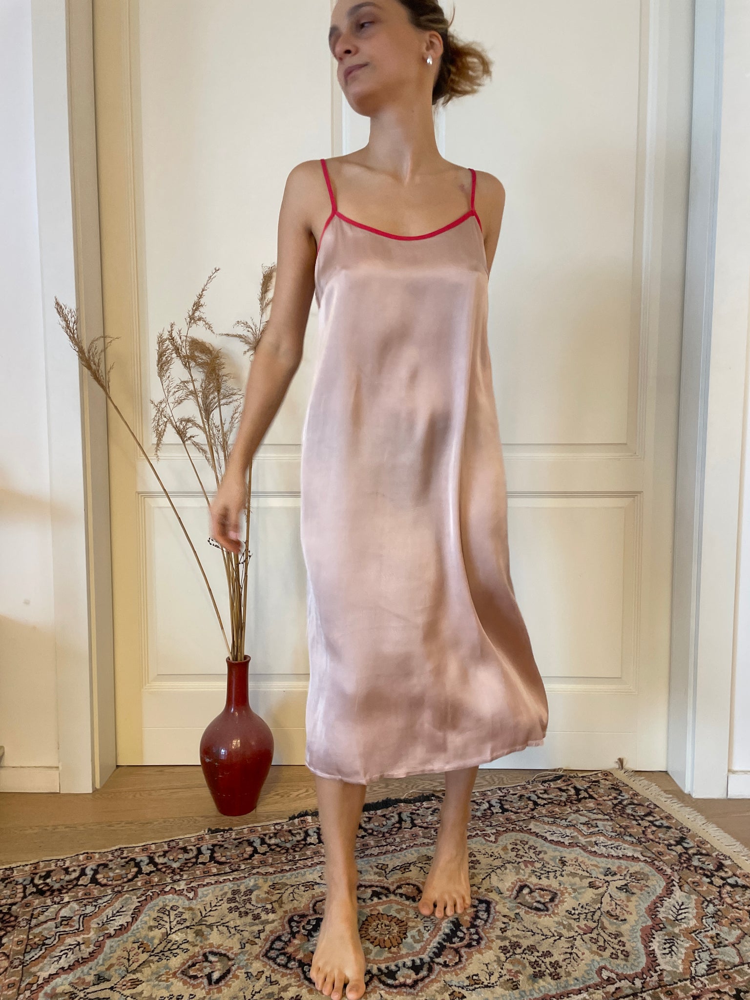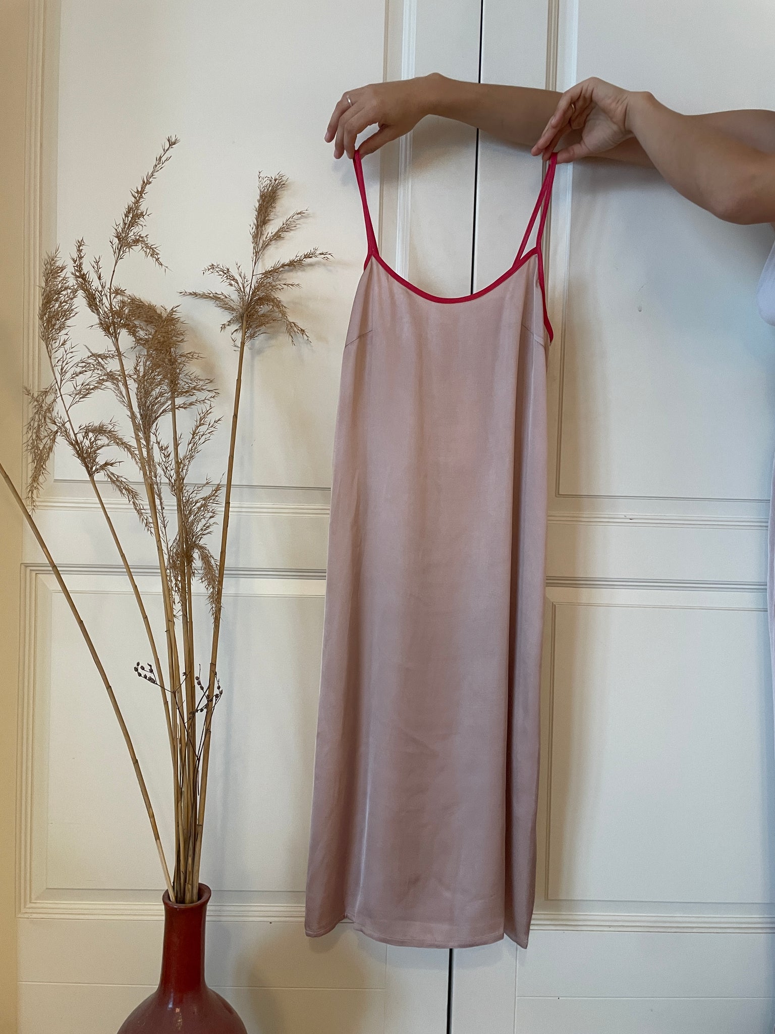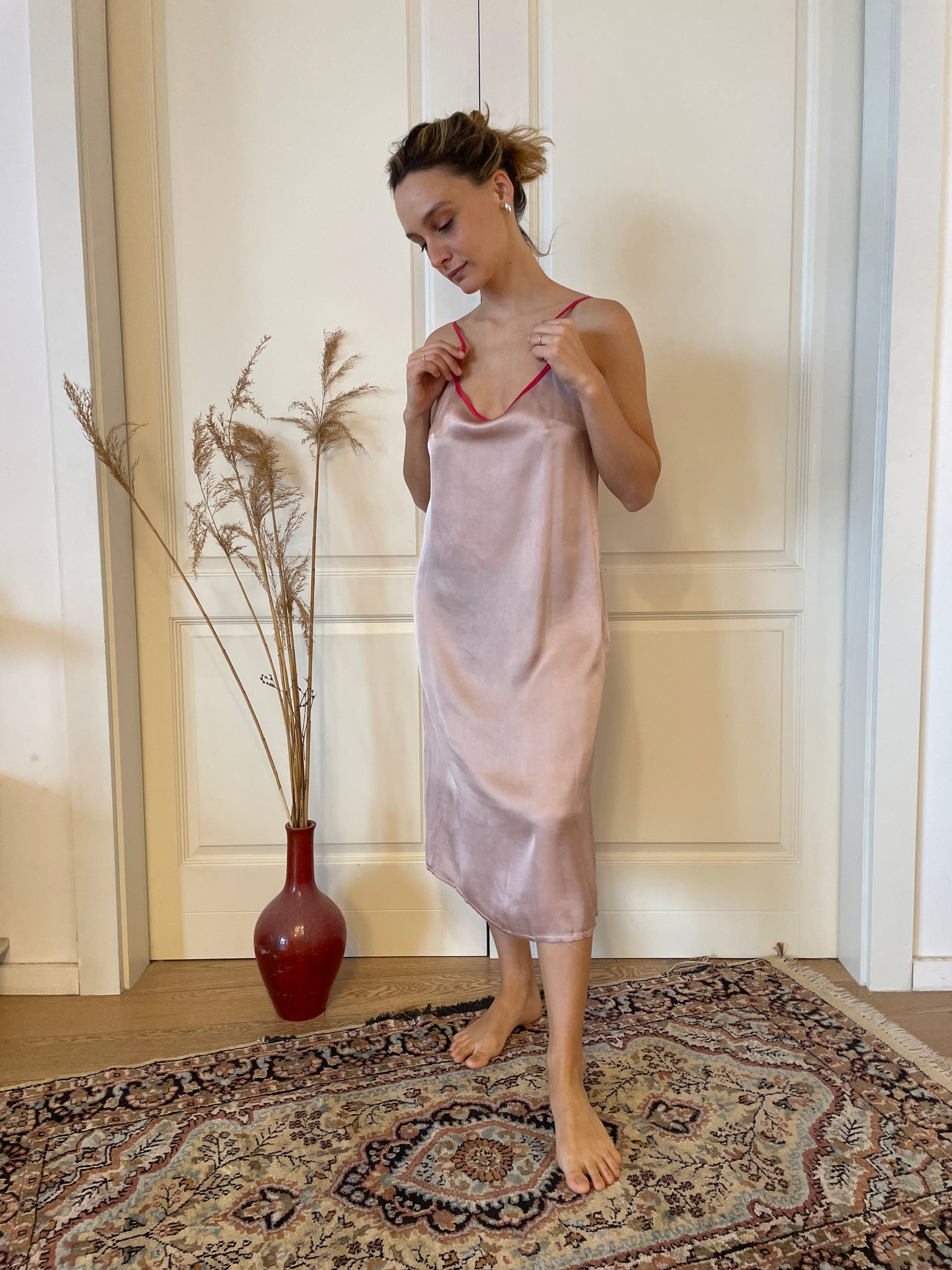 Its clean silhouette, delicate straps, and fluid satin fabric create a timeless shape that feels intimate yet elevated. The Powder Pink tone is gently accented with Cherry Pink edging, adding depth, warmth, and a subtle hint of seduction. Designed to be worn after dark—or gifted with intention.